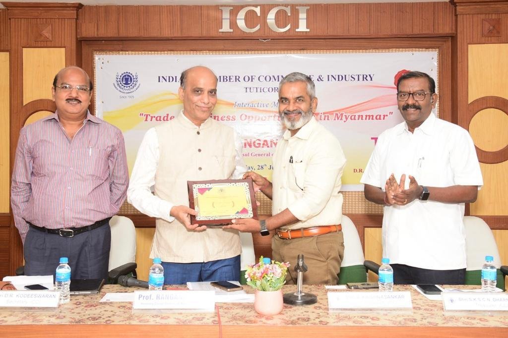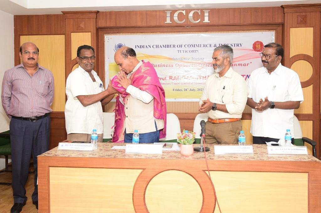 11/07/23 During Interactive Session between Port of Colombo TUTICORIN port at Sathya Resorts*ICCI members Honouring - Mr Keith D Bernard, Chairman of Sri Lankan port Authority ( Head of the Sri Lanka Delegation ) & Mr R. Prabhakar- Traffic Manager, VOC port authority, TUTICORIN*