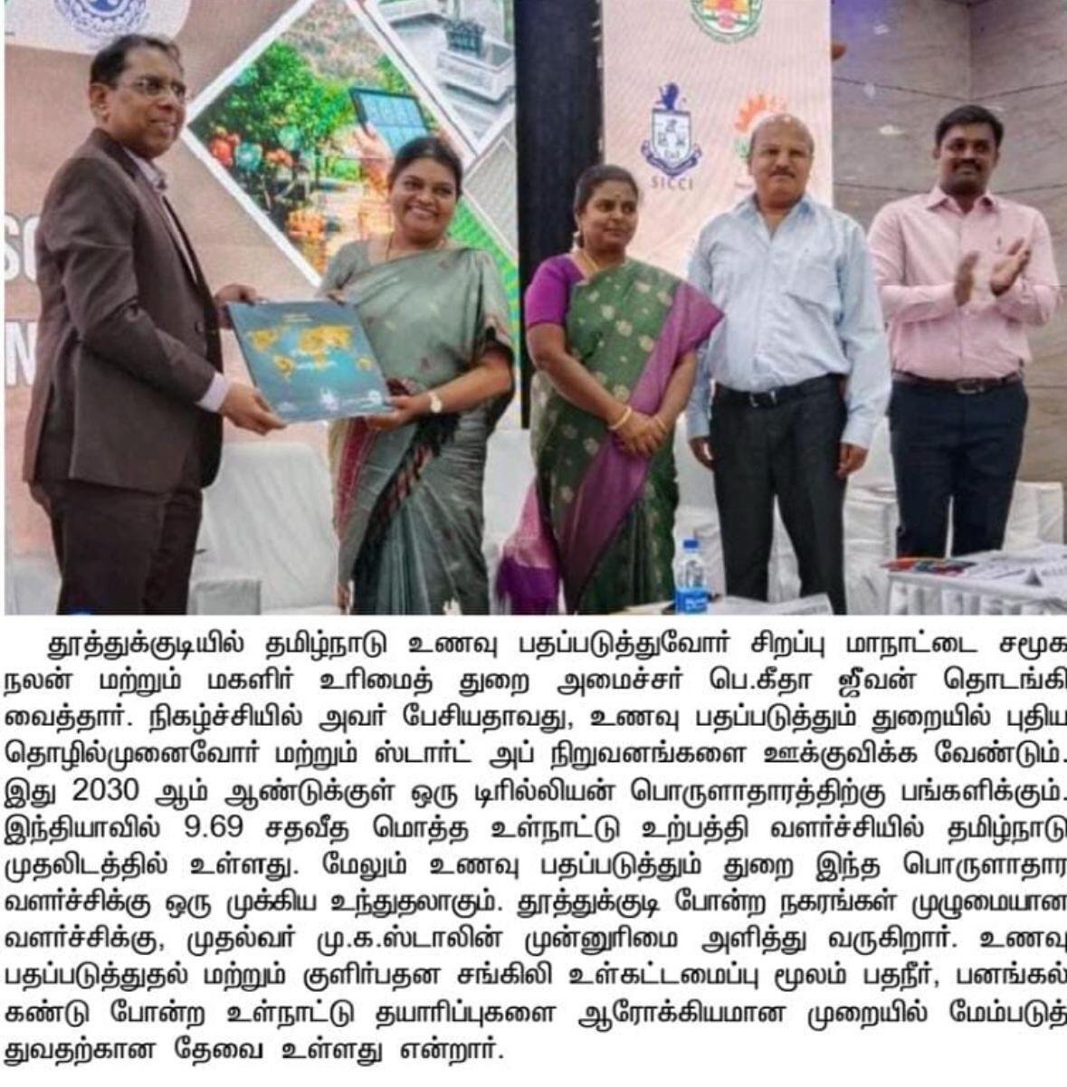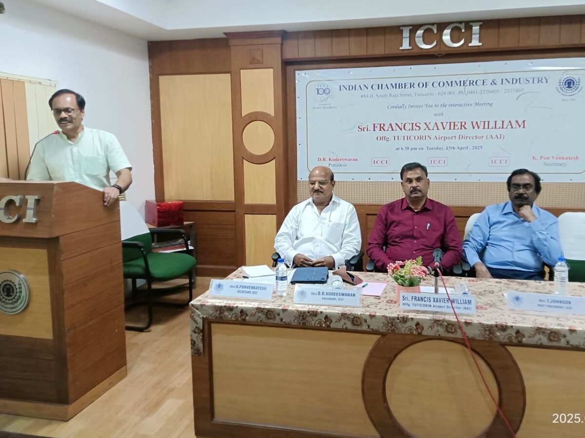 Thursday 22/5 ~brainstorming session was held on the Agenda: To increase the cargo volume handled at VOC Port , organised by VOC port authority. ICCI president D. R . KODEESWARAN , secretary K. Pon Venkatesh and Ec members attended this session. TAMILNADU FOOD PROCESSOR’s EXECUTIVE CONCLAVE - organised by SICCI , AND Indian chamber of commerce and industry, ( ICCI) TUTICORIN @ TUTICORIN on Saturday 10/5/2025 . Monday (05.05.25) evening attended Tamil Nadu vanigar sangankalin Peramaippu ..,- Traders day celebration.@ Madhuranthagam ..Honble Chief Minister of Tamilnadu Thiru M.K Stalin was the chief guest . IMG-20250319-WA0002 « ‹ of 24 › »