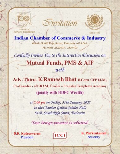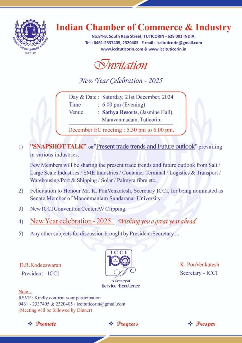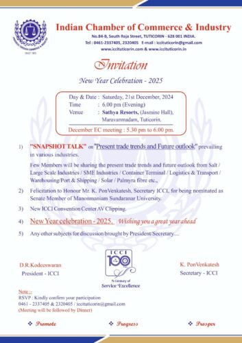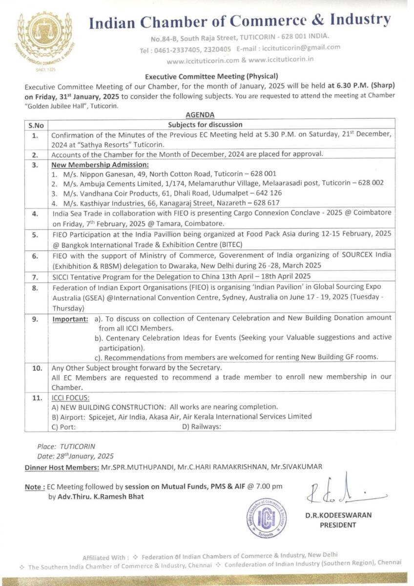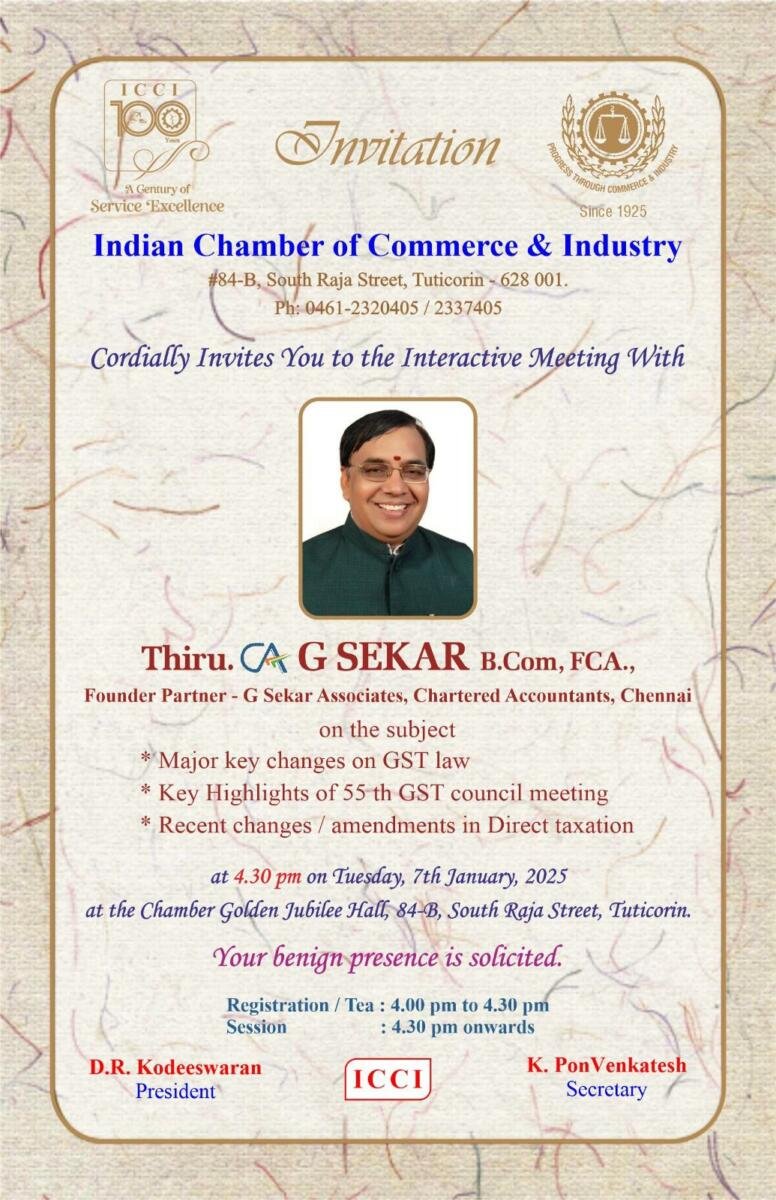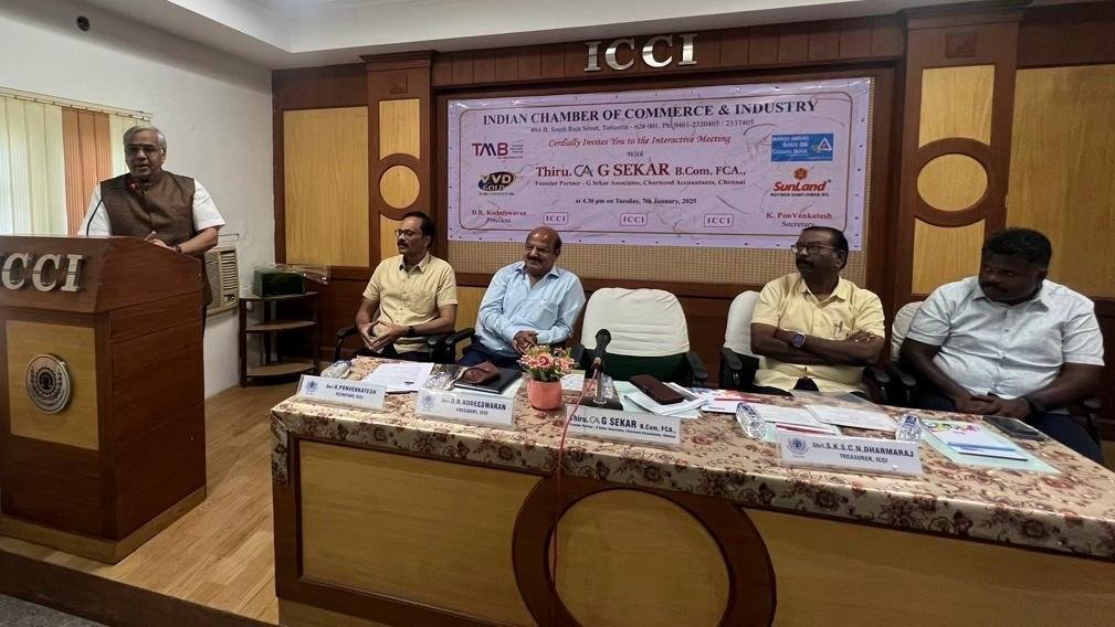 Today FRIDAY 6/12 ICCI MEMBERS had interactive meeting with Shri R Anand, Chief General Manager, NABARD, Chennai and Shri Suresh Ramalingam AGM NABARDThoothukudi in our chamber hall « ‹ of 24 › »